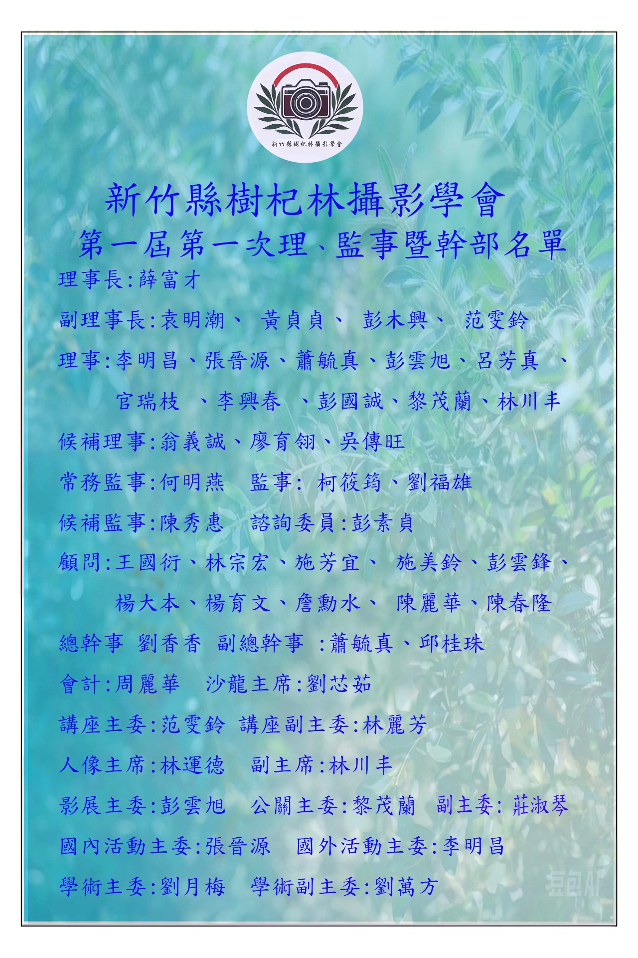 新竹縣樹杞林攝影學會第一屆第一次理監