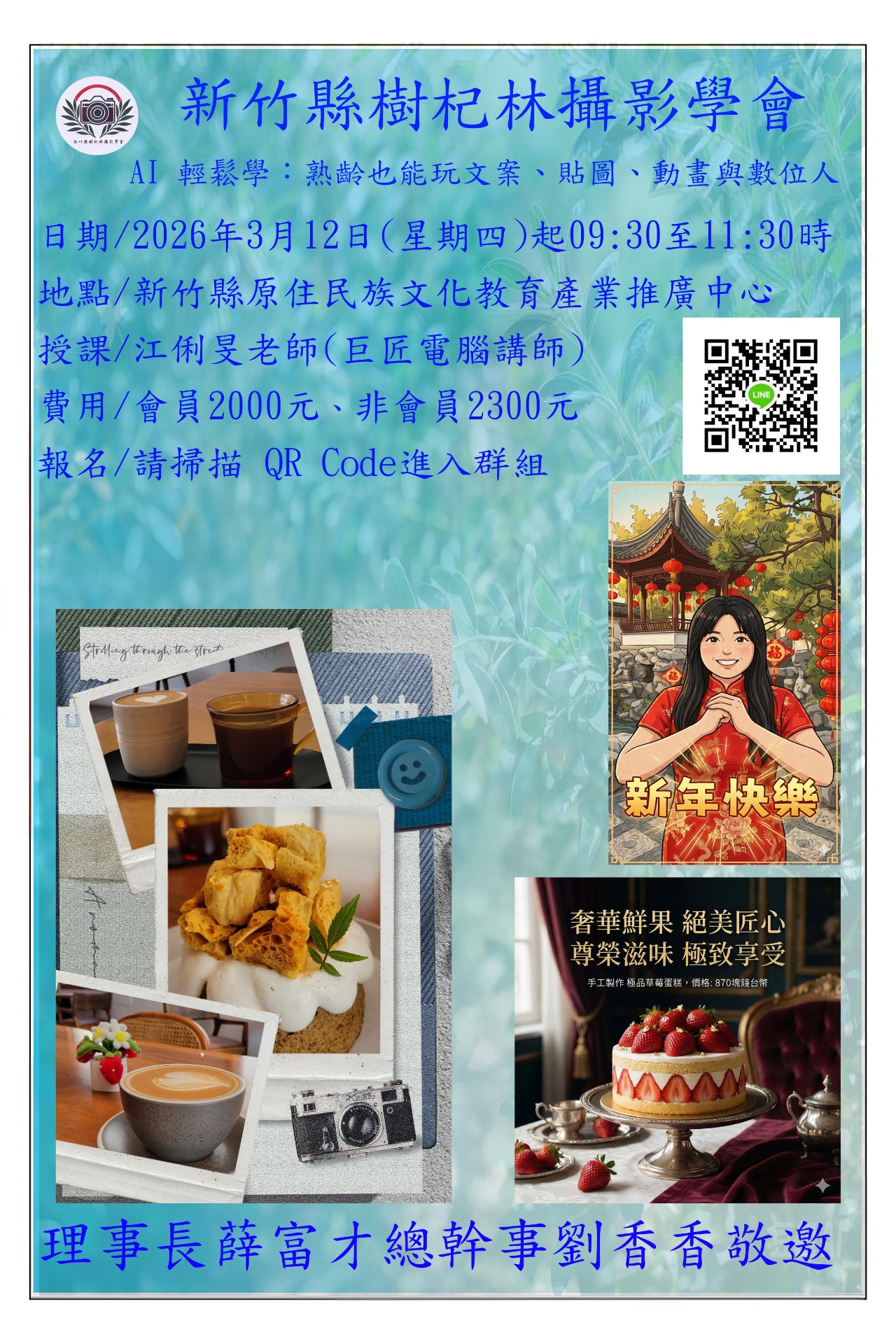 新竹縣樹杞林攝影學會會員1200元非會員1500元
