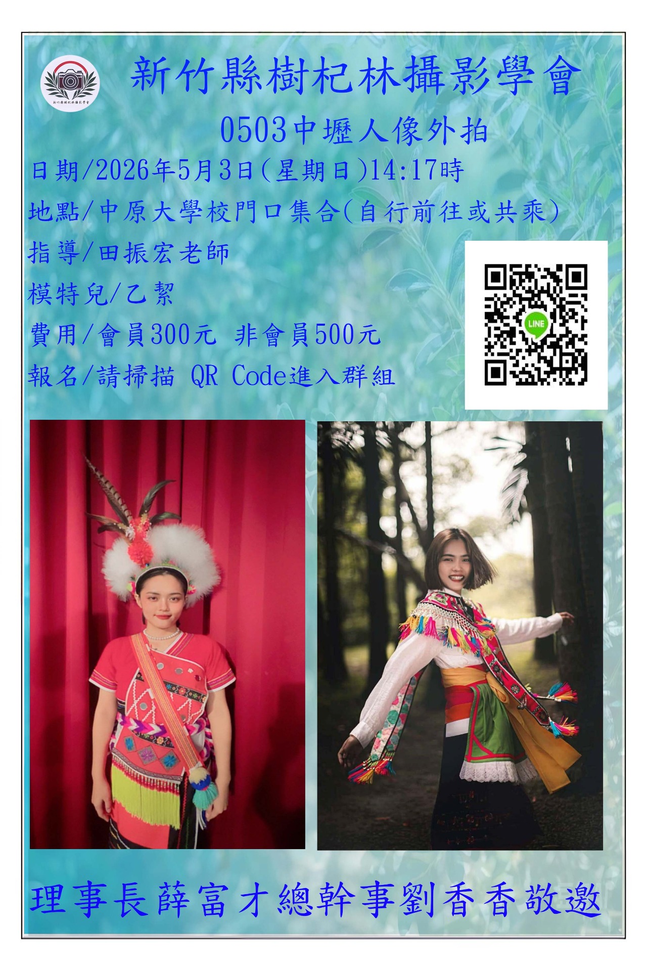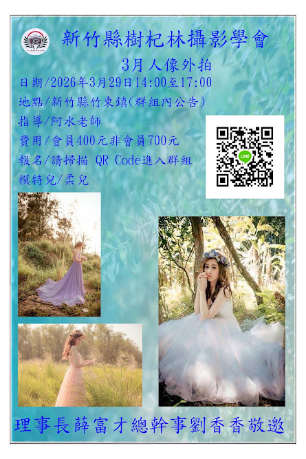 新竹縣樹杞林攝影學會第一場人像外拍來了 2月23日(日)下午三至六點,在竹東河濱公園